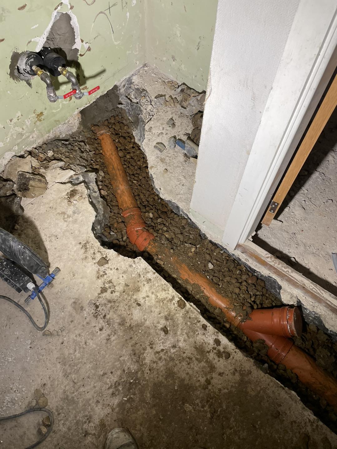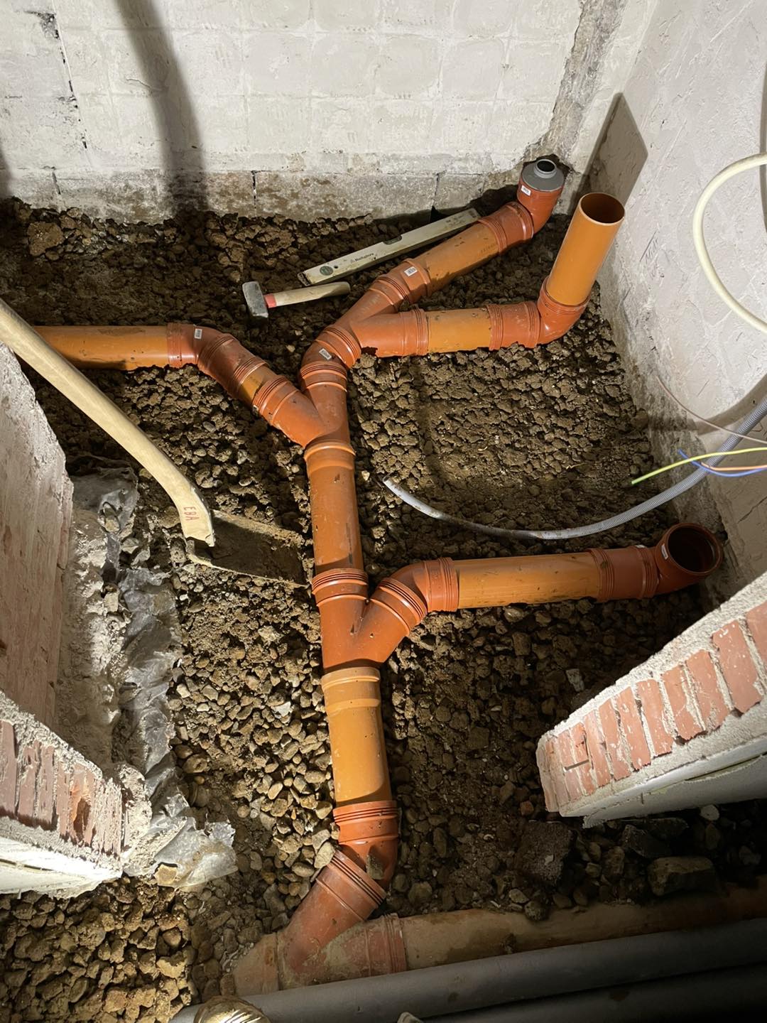 Kunden skulle have renoveret kælderen så han ønskede at vi skiftede det indvendige kloak inden han lukkede gulvet samt lavede nyt spildevand udenfor